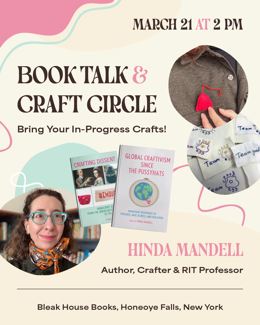 Craft Circle and Author Talk: Hinda Mandell on Craftivism and her new book, Global Craftivism Since The Pussyhats